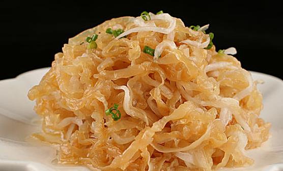 海蜇皮:海蛰含有人体需要的多种营养成分,尤其含有人们饮食中所缺的碘,是一种重要的营养食品。海蜇具有清热,化痰,消积,通便之功效,用于阴虚肺燥、高血压、痰热咳嗽、哮喘、瘰疬痰核、食积痞胀、大便燥结等症。
