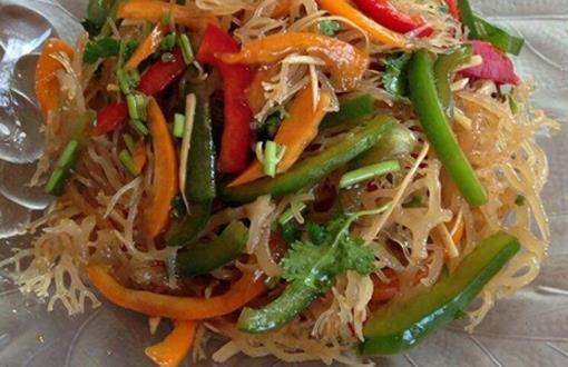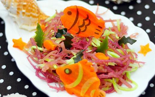 食材:泡发后的珊瑚草50g 、小黄瓜丝 20g、红萝卜丝 20 g、辣椒 少量、蒜末 少量 、白醋 一小匙、蚝油 两大匙、砂糖 一大匙、香油1/2大匙